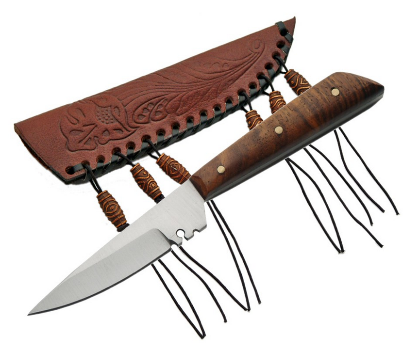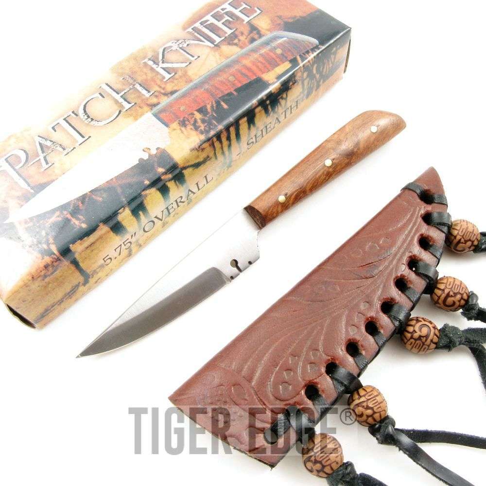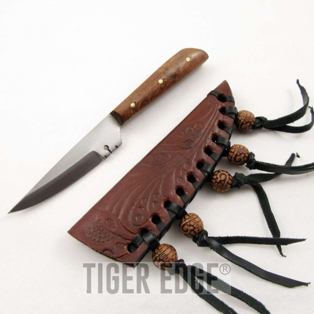 Fixed Blade Hunting Knife 5.75in Mini Native American Style Patch Leather Sheath