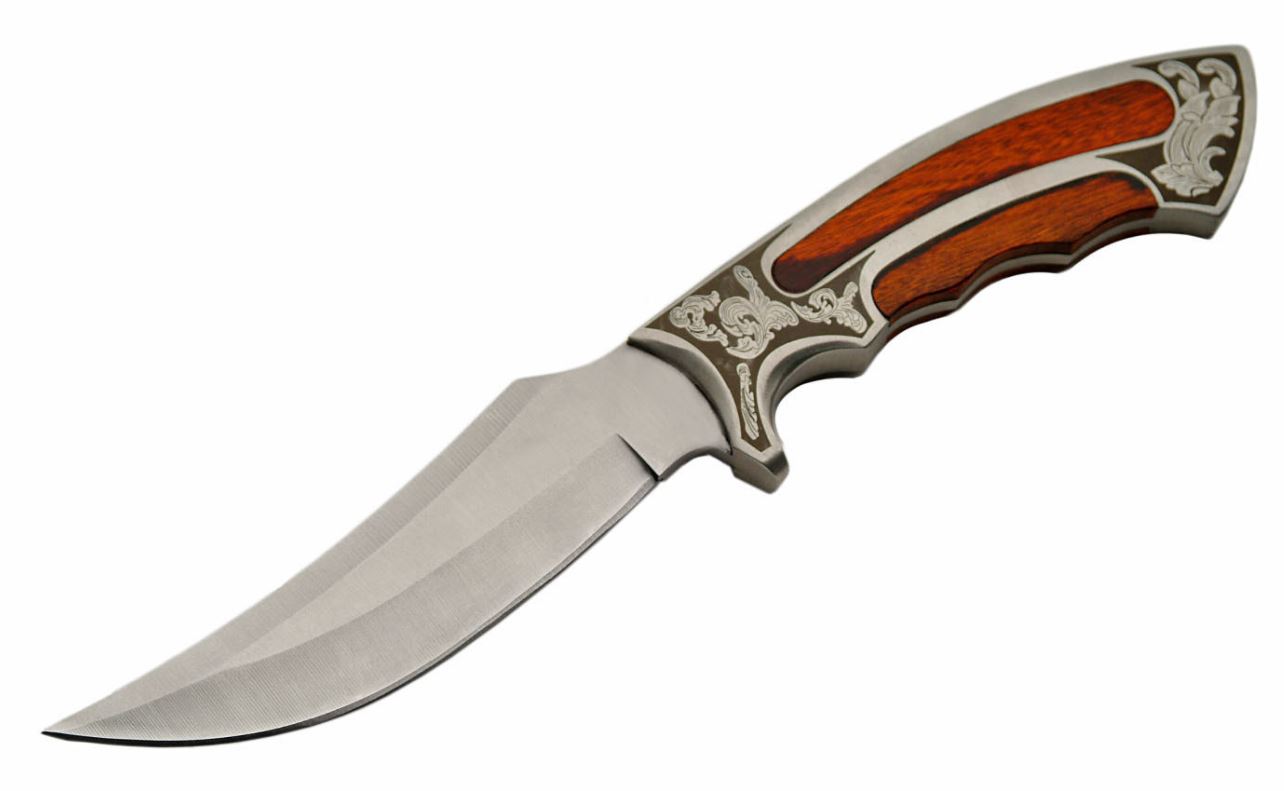 Hunting Knife 10in. Silver Fixed Blade Gentleman Elegant Wood Skinner + Sheath
