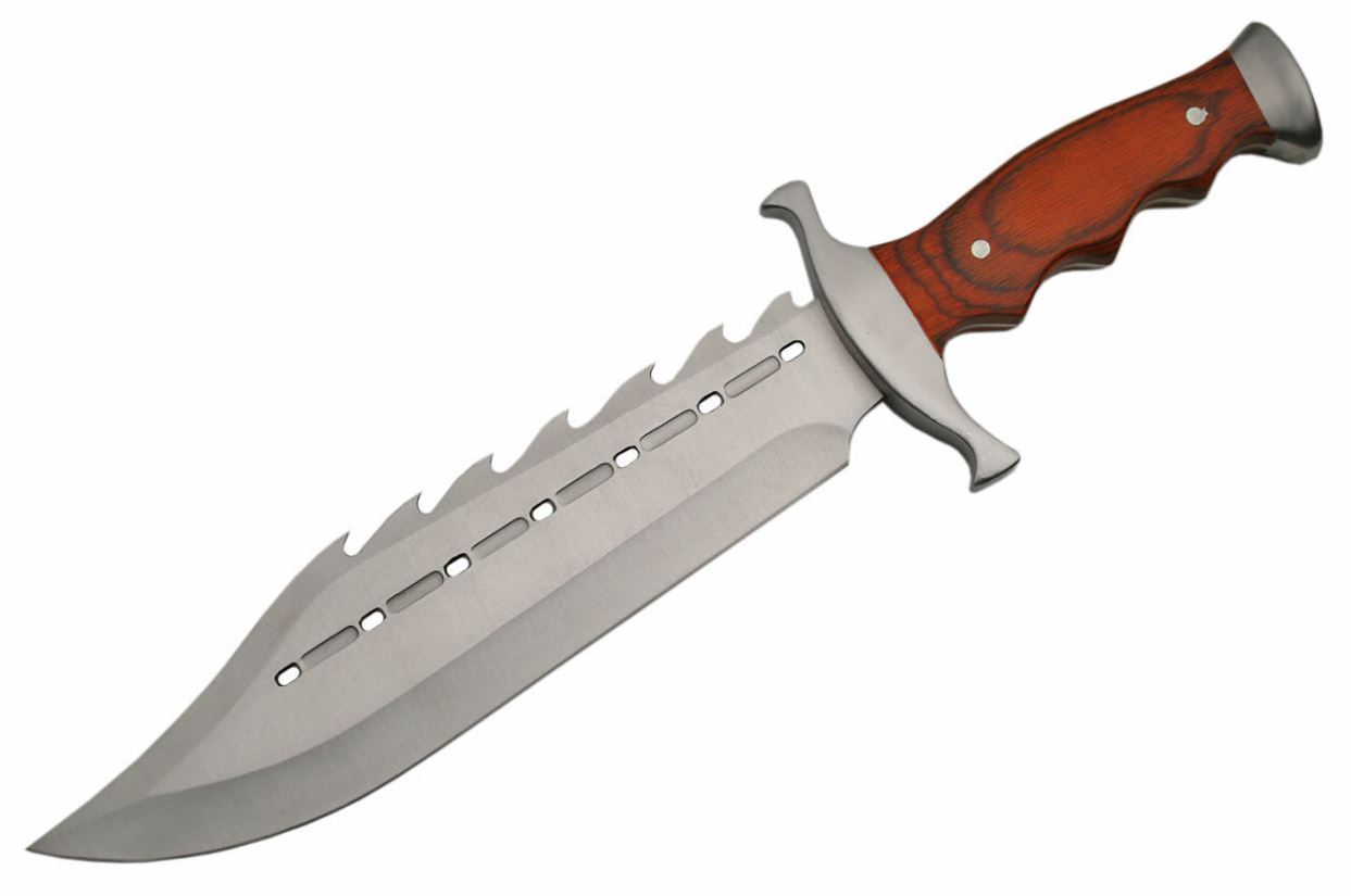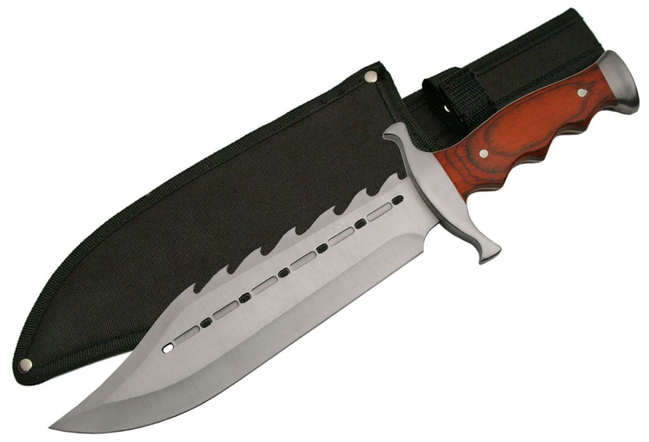 Hunting Knife 15in. Overall Wood Handle Gator Back Hog Hunter Skinner + Sheath