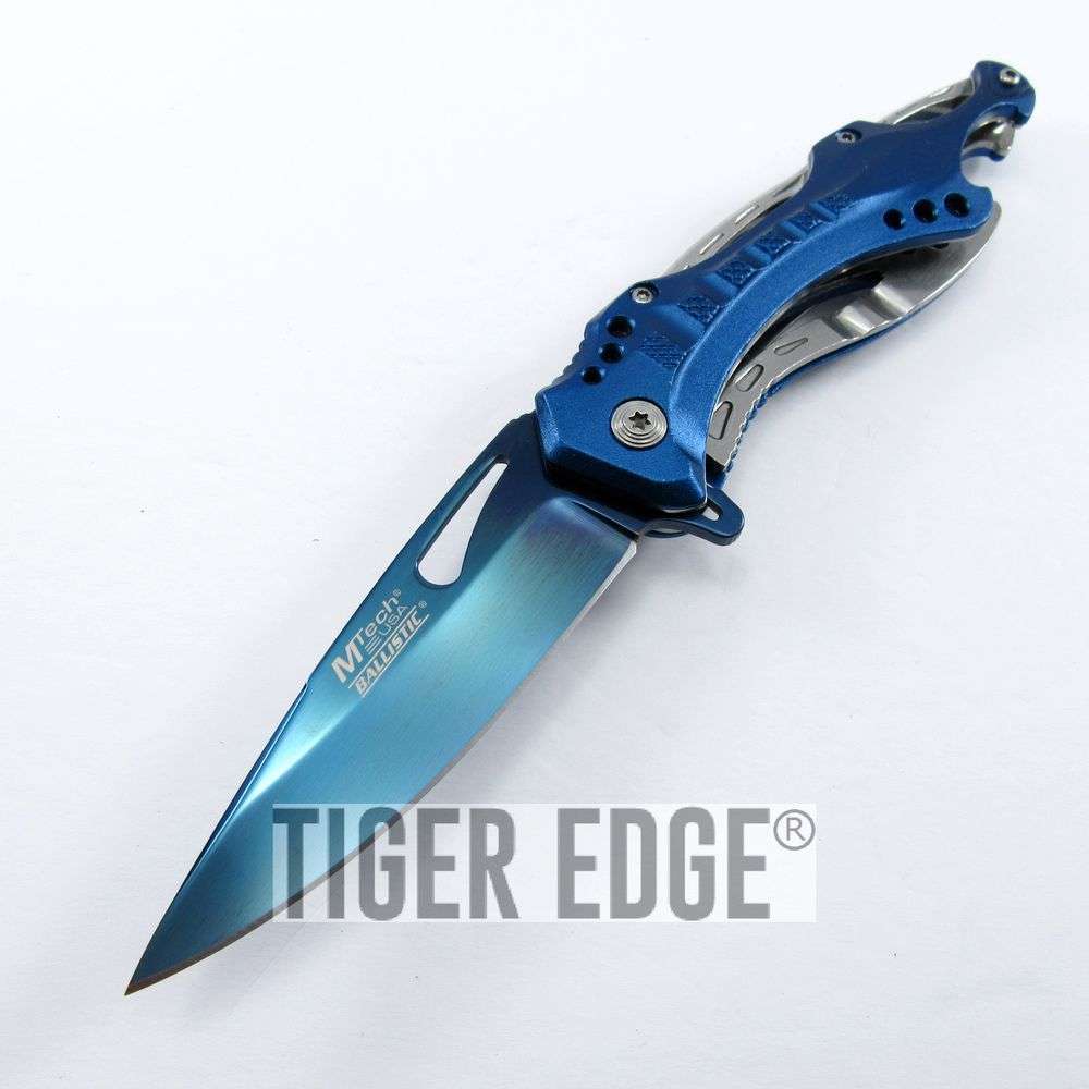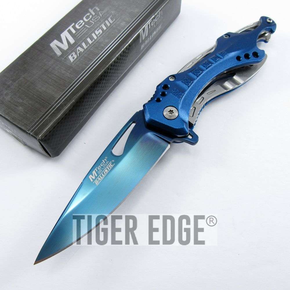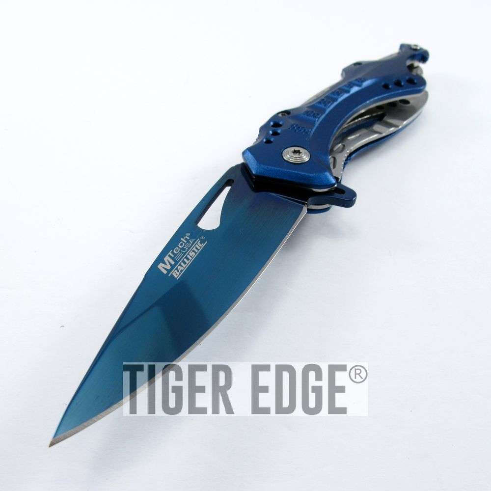 Spring-Assist Folding Pocket Knife Mtech Blue Blade Survival Black Tactical EDC